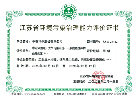 江蘇省環(huán)境污染治理工程設(shè)計能力甲級